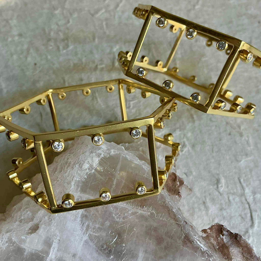 Anyone would fall for this bracelet because it’s the perfect mix of cool, modern, and effortlessly festive. The hexagon shape instantly sets it apart from every basic bangle out there, giving it that artsy, geometric vibe that feels fresh and fun. The gold brings a warm glow, and the CZs add just enough sparkle to make it holiday-ready without going overboard.
